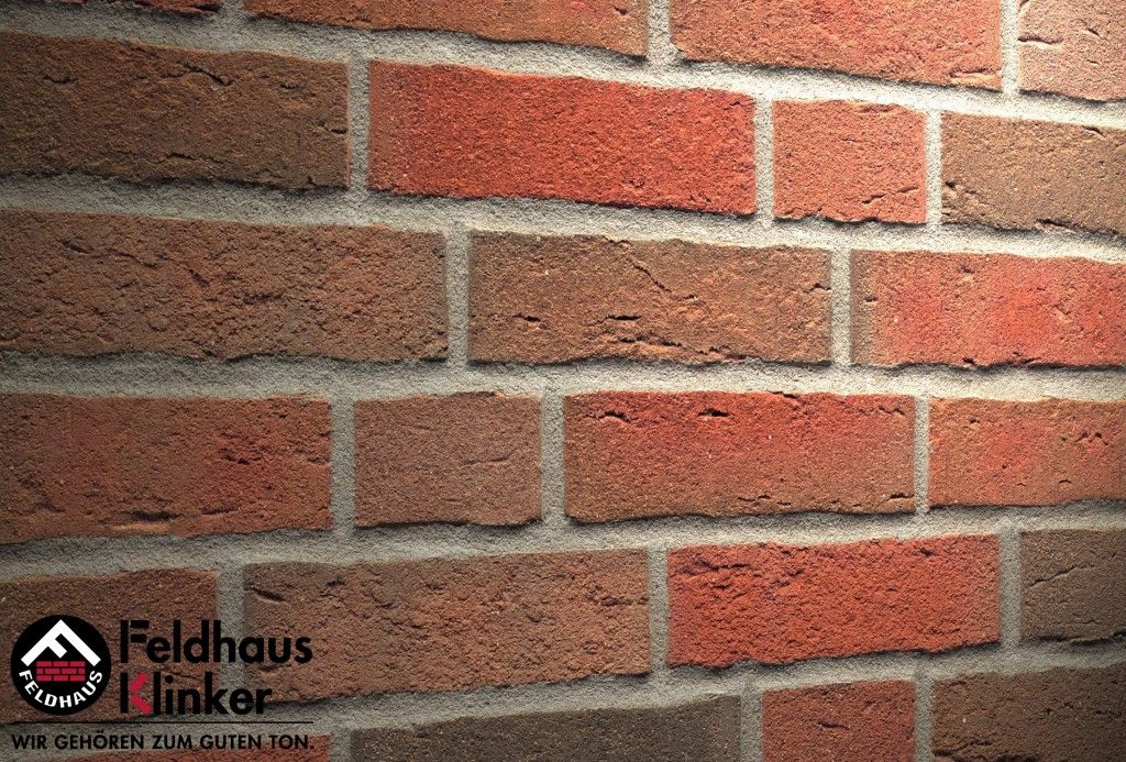 Облицовочный клинкерный кирпич ручная формовка K 689 WDF (sintra ardor) Feldhaus Klinker
